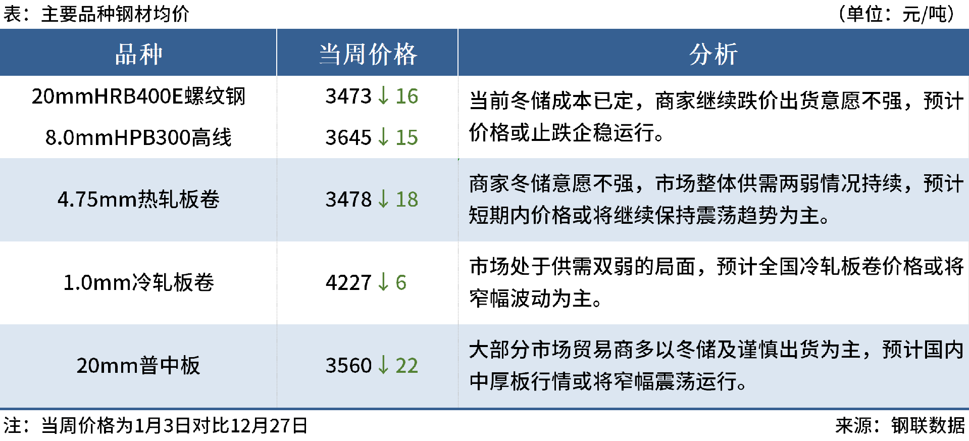◎1月3日,沙鋼廢鋼采購價格下調(diào)50元/噸,1月5日起廢鋼再次下調(diào)30元/噸,三天累計跌幅為80元/噸,調(diào)后:重三含稅2480元/噸,爐一含稅2560元/噸。