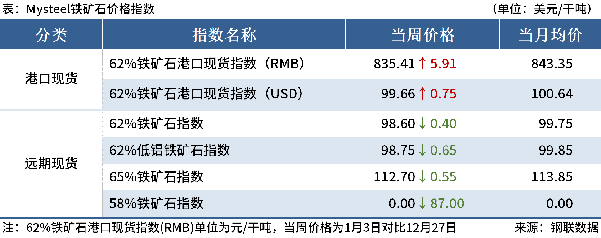 ◎1月3日,全國主港鐵礦石成交144.70萬噸,環(huán)比增13.5%;237家主流貿(mào)易商建筑鋼材成交9.34萬噸,環(huán)比減16.5%。