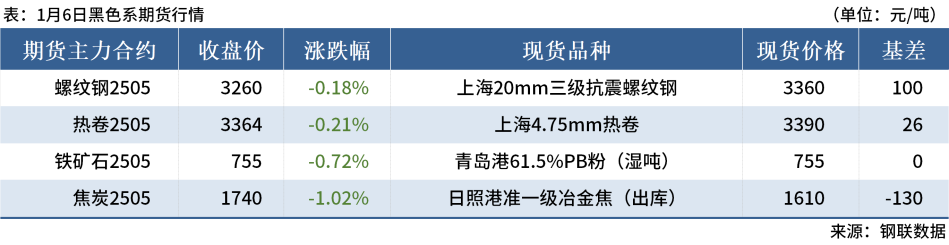 ◎1月6日,焦炭開啟第六輪提降。其中,邢臺(tái)、天津、唐山等部分鋼廠對(duì)濕熄焦炭下調(diào)50元/噸、干熄焦炭下調(diào)55元/噸,1月8日零點(diǎn)執(zhí)行。