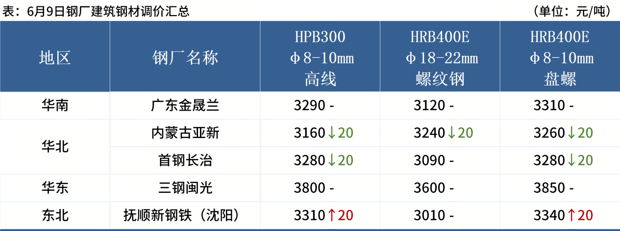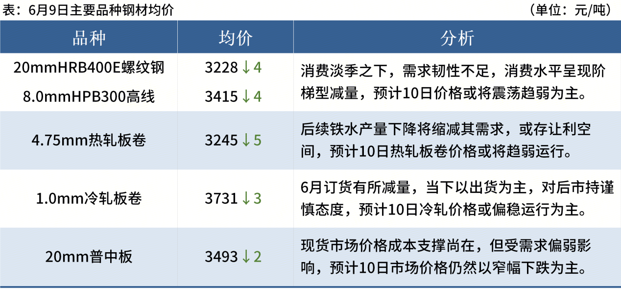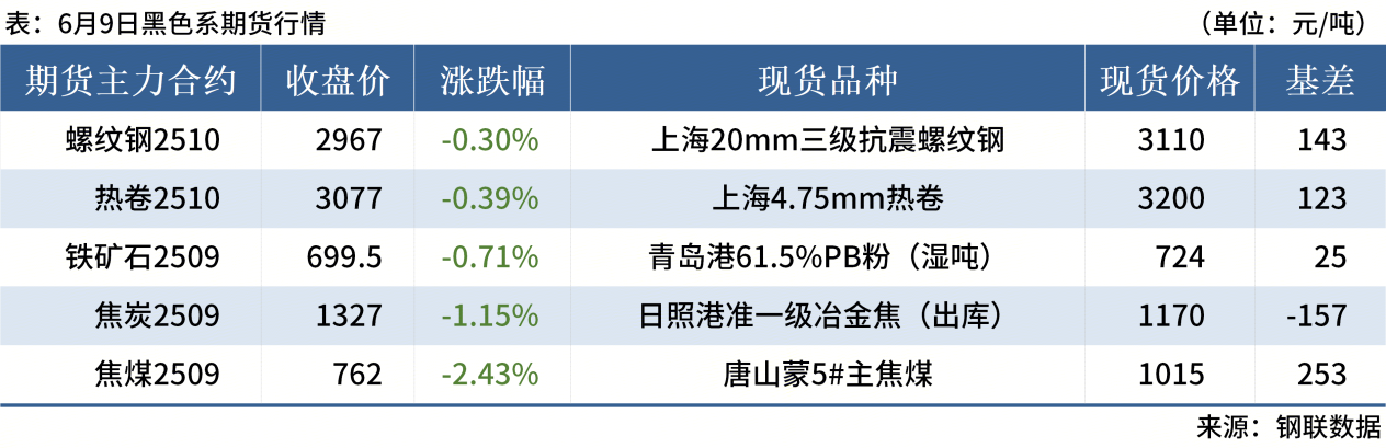 ◎ 6月9日,全國主港鐵礦石成交85.00萬噸,環(huán)比增14.4%;237家主流貿(mào)易商建筑鋼材成交10.25萬噸,環(huán)比減1.8%。