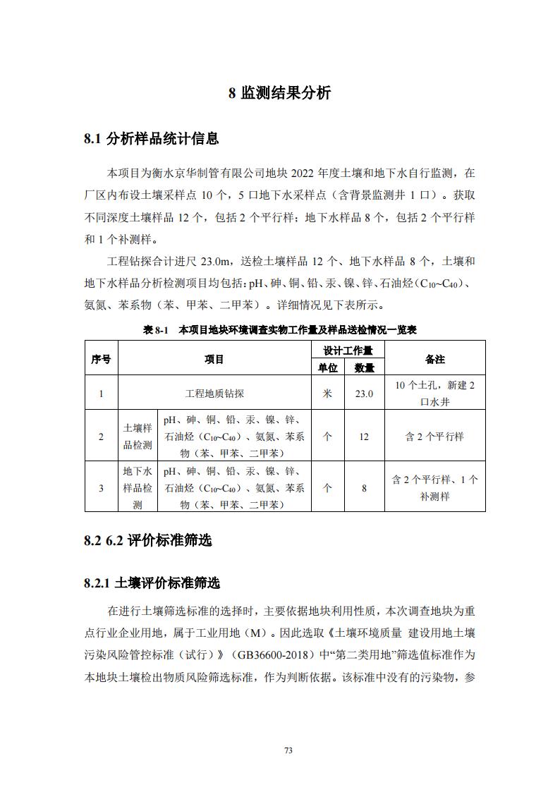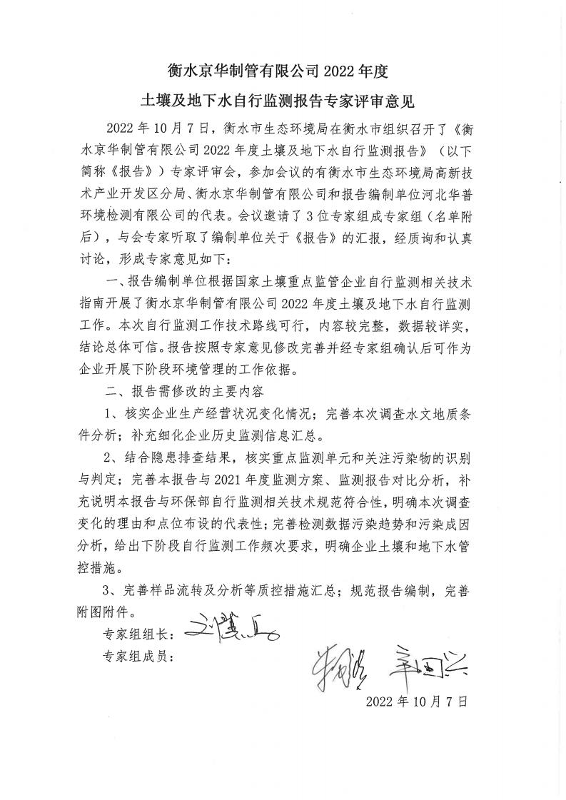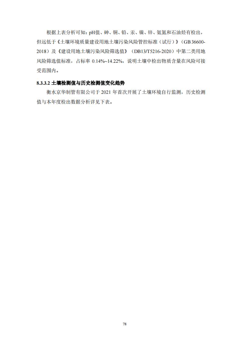 衡水京華制管有限公司 2022 年度土壤及地下水自行監(jiān)測(cè)報(bào)告
