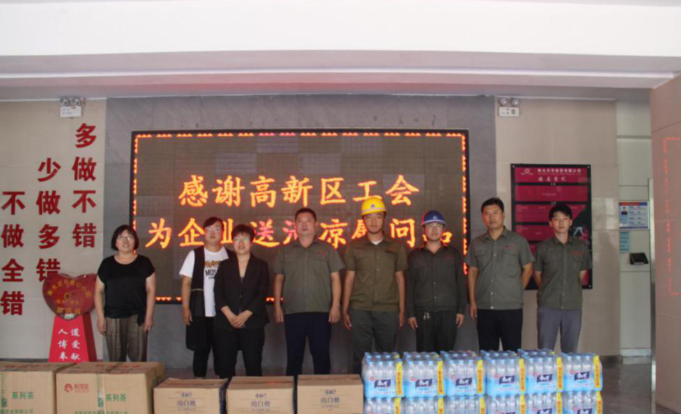 高新區(qū)工會(huì)開(kāi)展為企業(yè)送清涼慰問(wèn)活動(dòng)為做好夏季防暑降溫和職工勞動(dòng)保護(hù)工作,衡水市高新區(qū)工會(huì)主席杜建榮,委員高翠翠、周紅娥于7月30日到衡水京華開(kāi)展企業(yè)送清涼慰問(wèn)活動(dòng),總經(jīng)理溫朝福,總經(jīng)理助理馬亮進(jìn)行接待。衡水市高新區(qū)工會(huì)成員對(duì)企業(yè)夏季防暑降溫等勞動(dòng)保護(hù)方面的工作進(jìn)行走訪調(diào)研,并為企業(yè)職工送上清涼飲料、防暑降溫茶葉、綿白糖···