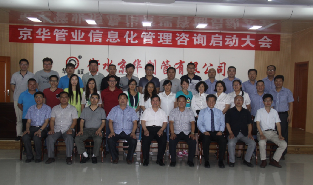 2015年6月22日上午,京華管業(yè)信息化管理咨詢啟動大會在衡水京華制管有限公司五樓會議室如期舉行。中鋼李佳峻、日鋼張寶鳳、姬生峰、趙項德、曹洪建五位領(lǐng)導(dǎo)出席本次會議并作指導(dǎo),唐山京華、京華化工和衡水京華的中高層領(lǐng)導(dǎo)齊聚一堂。 會議開始首先由張總做了重要發(fā)言。隨后,李總分別就中鋼公司的基本情況、日鋼管理變革與信息化、中鋼···